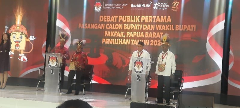 BERITAPRESS FAKFAK/Komisi Pemilihan Umum (KPU) Kabupaten Fakfak, menggelar debat publik pertama bagi para calon Bupati dan Wakil Bupati Fakfak untuk Pilkada 2024.