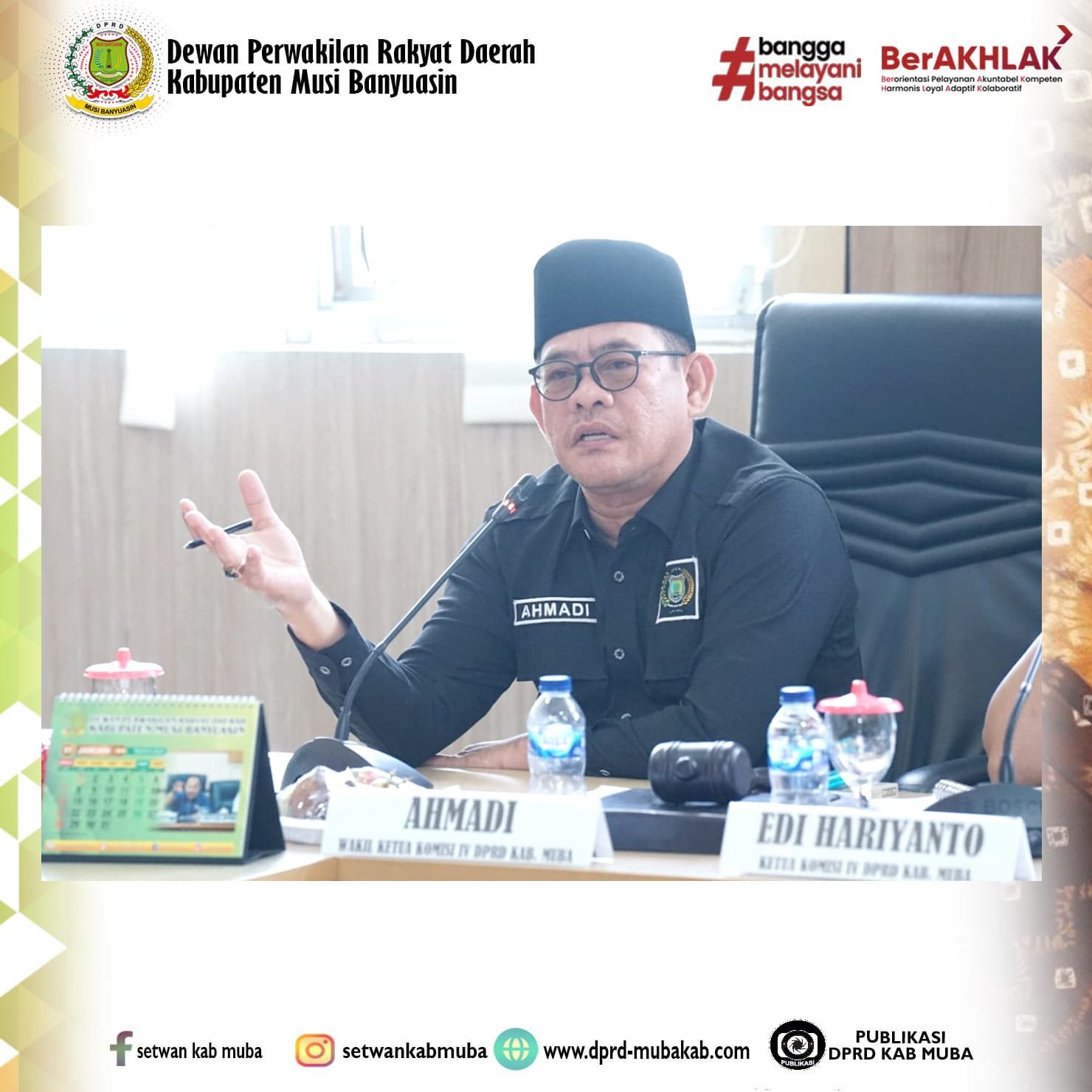 Rapat di pimpin oleh Ketua Komisi IV, Edi Hariyanto dan dihadiri Wakil Ketua Komisi IV, H Ahmadi, Sekretaris Komisi IV, Muhammad Isa, Anggota Komisi IV, Dinas Tenaga Kerja dan Transmigrasi Kabupaten Musi Banyuasin, Kepala Bagian Hukum Setda Kabupaten Musi Banyuasin, Camat Tungkal Jaya, Camat Sungai Lilin, Kepala Desa Suka Damai, Kepala Desa Sri Gunung, PT. Merana Sentrarejeki, dan PT Kirana Mining Contractor.