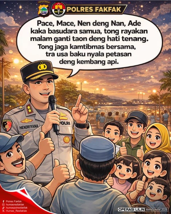 Dalam kesempatan tersebut Pace Cikar sapaan akrab menghimbau kepada seluruh warga Fakfak agar selalu menjaga keamanan dan ketertiban Kota Fakfak yang kita cintai ini, “Stop Kitorang Menyebarkan Informasi Yang tidak Benar Atau Hoax yang dapat Memecah belah dan mencemarkan Filosofi SATU TUNGKU TIGA BATU”tutup Dahlan Namudat,(IB).