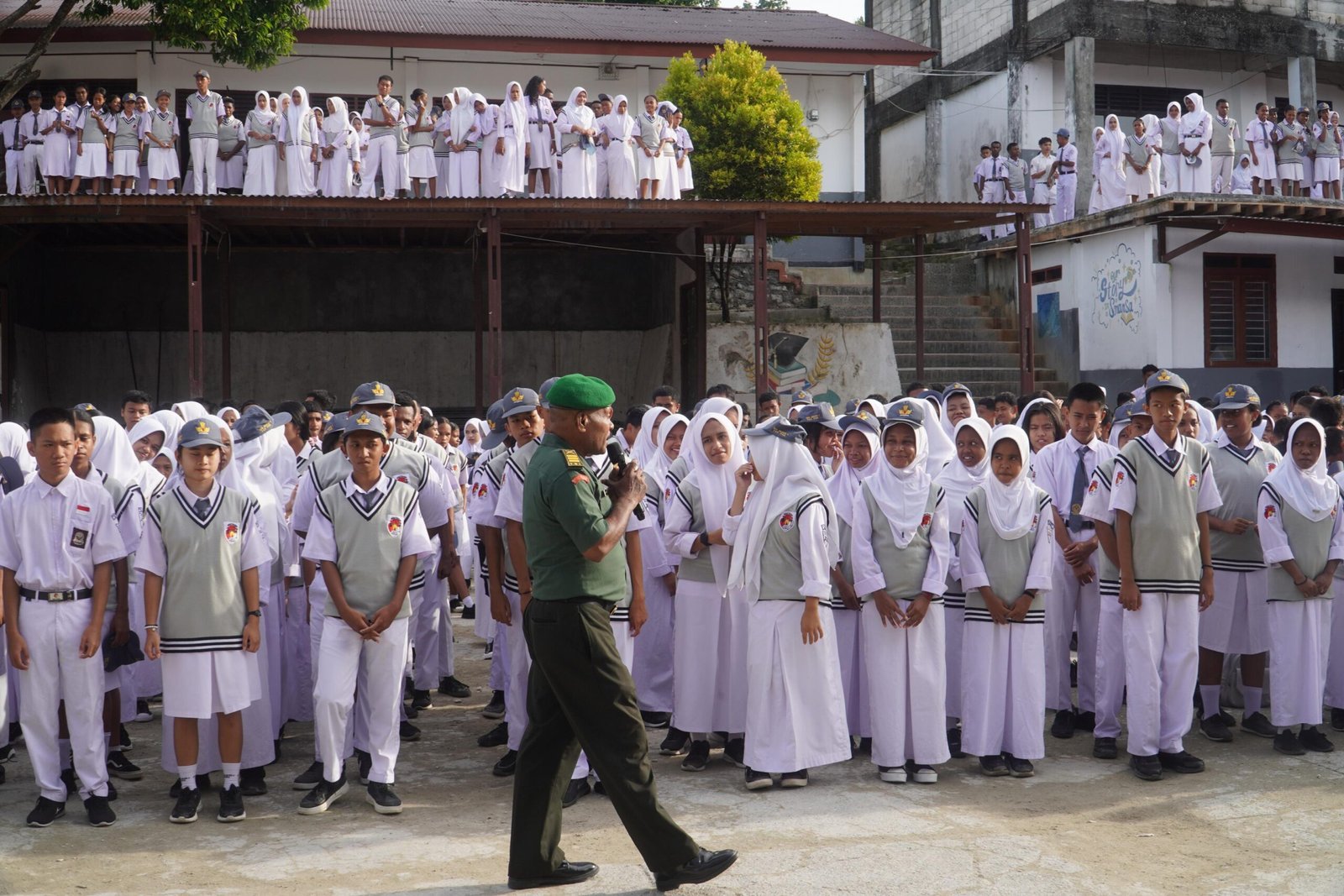 BERITAPRESS FAKFAK/Kasi Teritorial Korem 182/Jazira Onim, Mayor Arm Hendriyana, S.Sos., M.M Sosialisasikan Materi Wawasan Kebangsaan dan Bela Negara kepada Pelajar SMA Negeri 1 Fakfak, di Jalan K.H. Dewantara, Fakfak, Papua Barat Senin, (10/02/2025).