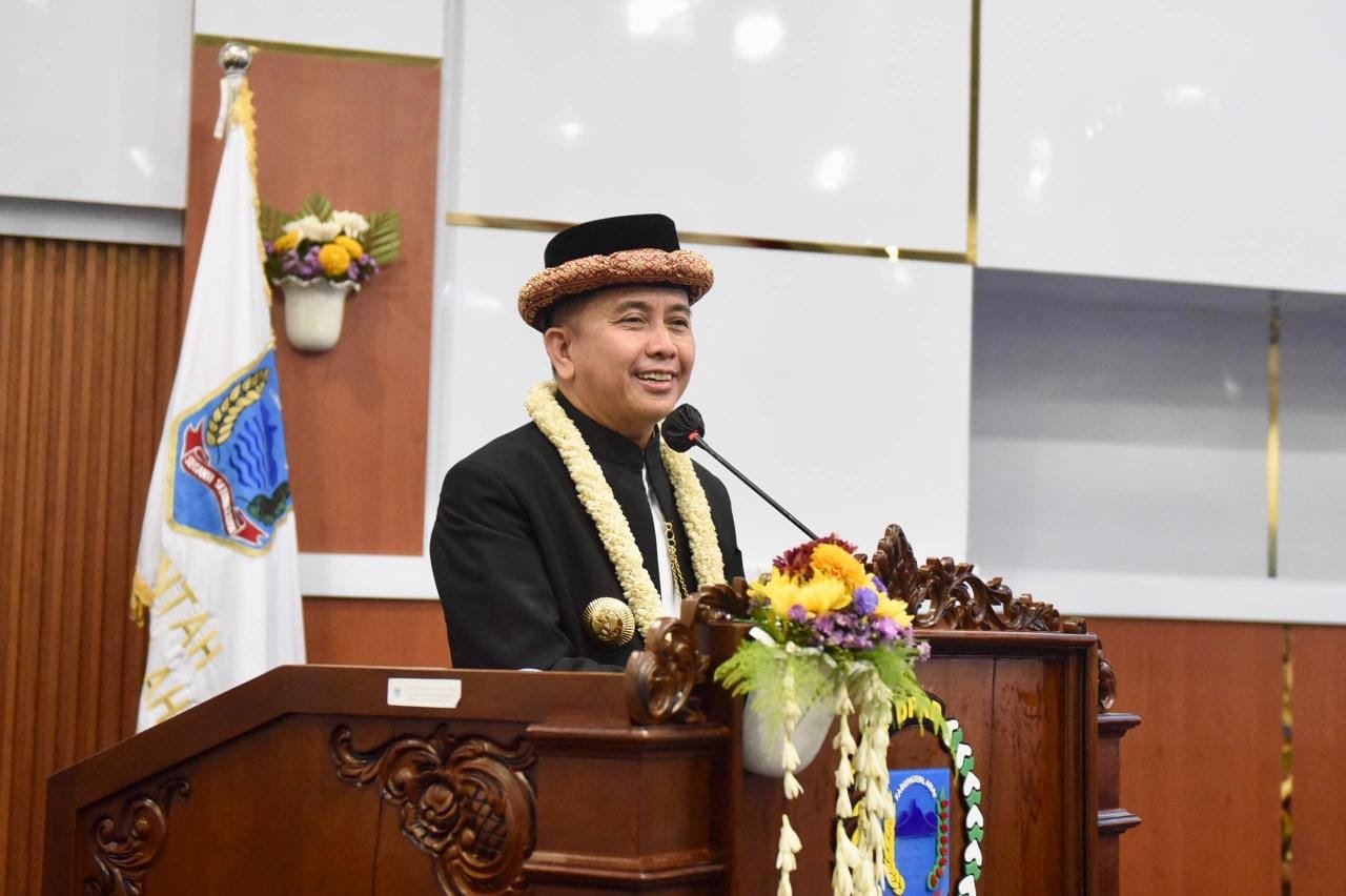 BERITAPRESS, LAHAT | Penjabat (Pj) Gubernur Sumatera Selatan (Sumsel) Agus Fatoni didampingi Pj Ketua Tim Penggerak Pembinaan Kesejahteraan Keluarga (TP PKK) Sumsel Tyas Fatoni menghadiri Rapat Paripurna DPRD Kabupaten Lahat X Masa Persidangan Ketiga Tahun Sidang 2024 dalam rangka Memperingati Hari Jadi Kabupaten Lahat ke-155 Tahun. Kegiatan ini berlangsung di Gedung DPRD Kabupaten Lahat, Sumatera Selatan, Senin (20/5/2024).