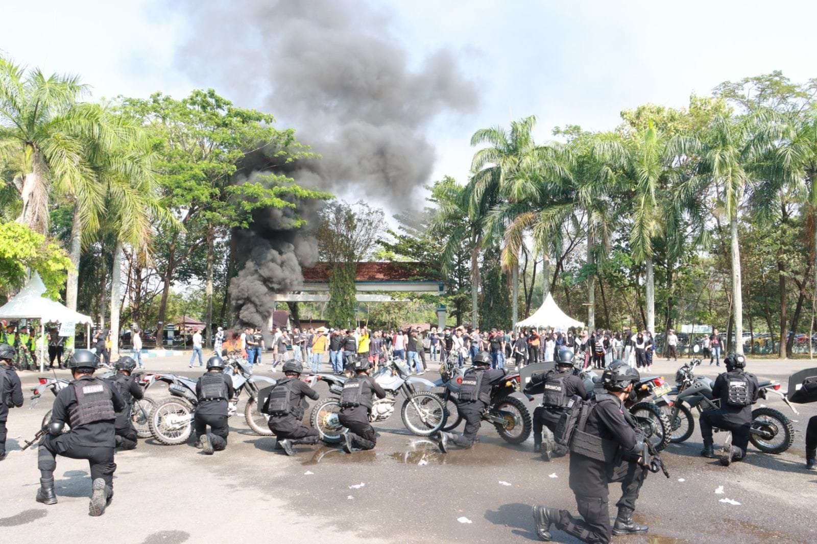 Sebanyak 300 personel gabungan dari Polri, TNI, Satpol PP, dan Dinas Perhubungan dikerahkan untuk menjaga ketertiban selama aksi yang melibatkan sekitar 2.500 orang. Massa berkumpul di Gedung Kesenian Lahat sebelum bergerak menuju Kantor KPUD dan Kantor Pemerintah Daerah Kabupaten Lahat.
